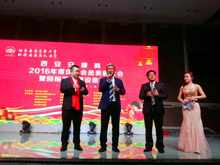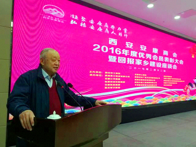 “凝聚安康商界力量 弘扬安康商人精神”。2月12日下午,西安安康商会2016年度优秀会员表彰大会暨回报家乡建设座谈会在安康市隆重召开。陕西省原常务副省长徐山林,西安安康商会专家顾问组长陈有德及全体专家顾问和200多个会员单位代表参加会议。会议邀请西安市工商联、安康市工商联、安康市委、市政府相关部门、各区县政府等相关部门和县市主要领导出席了会议。 大会对2016年商会工作进行总结,对90家优秀会员单位进行表彰,并发布"百企帮百村" 精准扶贫的倡议书。安康市市长徐启方、陕西省原常务副省长徐山林分别做了重要讲话。在晚宴联谊活动和交流座谈中,由会员单位带来了丰富多彩的文艺演出节目。 商会副会长、公司董事长徐浩先生,因在脱贫攻坚、捐资助学等公益事业方面表现突出,获得“社会公益贡献奖”。