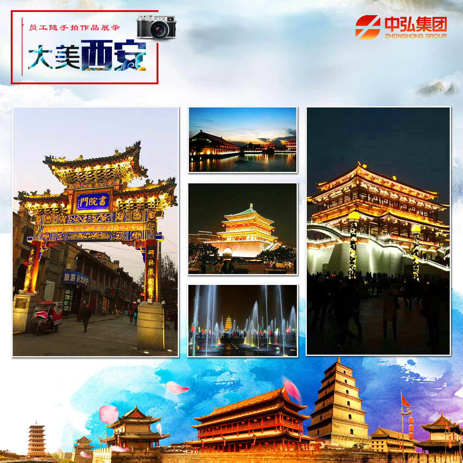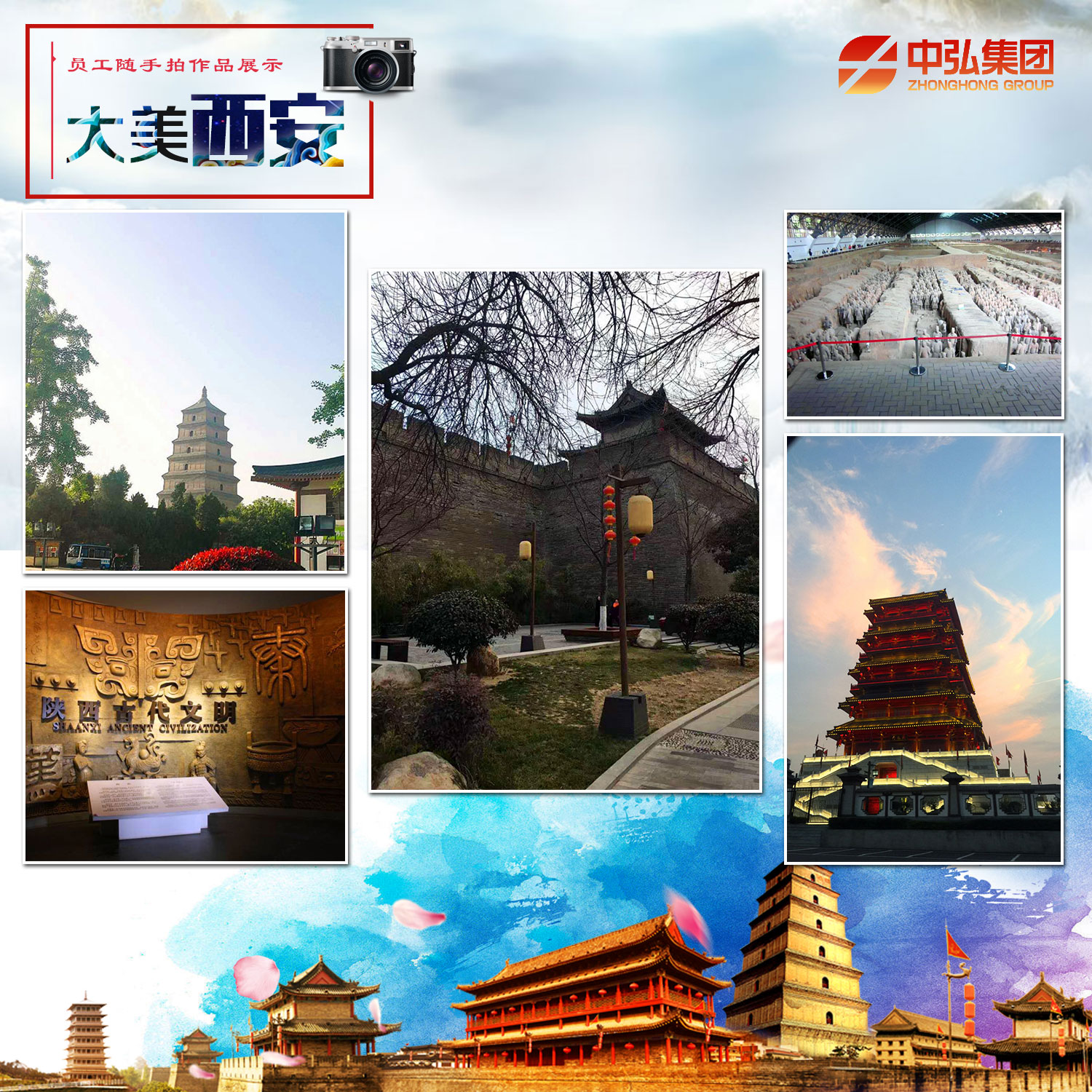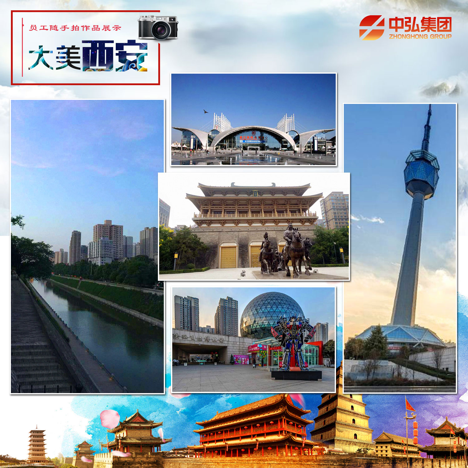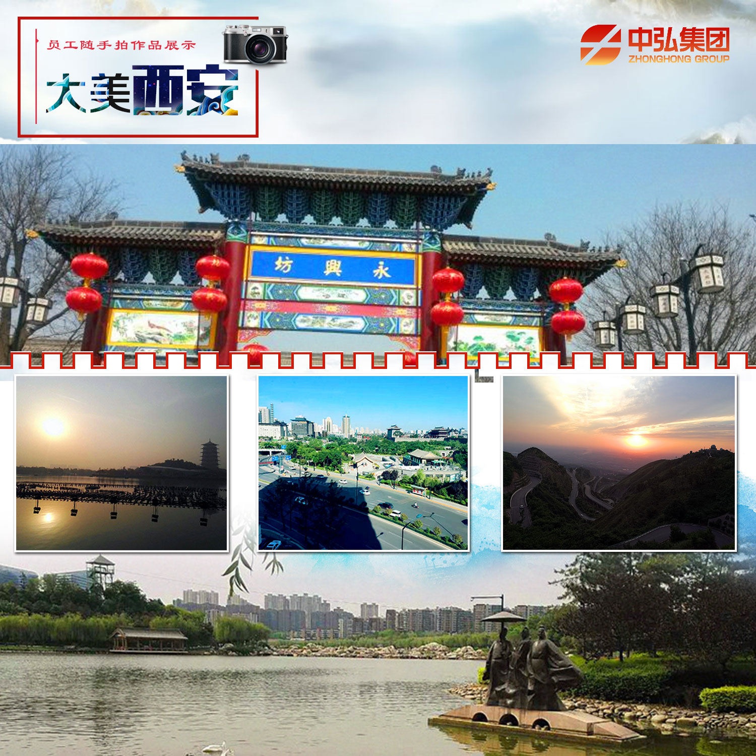2017年度第6期“大美西安”员工随手拍活动共征集摄影作品48幅。员工从人文景观、历史遗迹、山川古镇、都市气息等多种角度记录下我们眼中美丽的古城。 西安——13朝古都,丝绸之路起点,千年人文积淀,现代化都市气息,一座生机盎然的文明古都,一座雅韵流溢的文化名城! 身边事、身边人、身边景——人人都是摄影师!
