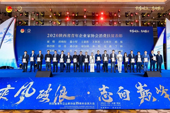 4月16日,以“乘风破浪 志向巅峰”为主题的中国企业家陕西行暨陕西省青年企业家协会35周年会员大会在西安召开。中国青年企业家协会常务副会长许华平、秘书长刘钢,共青团陕西省委书记段小龙、副书记黄华,省青企协会长崔程以及省青企协副会长、公司董事长徐浩等出席会议并为杰出、优秀企业家颁奖,省青企协治理团队及会员、有关方面代表等600余人参加会议。