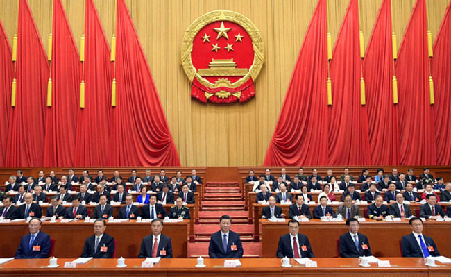 习近平、李克强、汪洋、王沪宁、赵乐际、韩正、王岐山和大会主席团成员在主席台就座。