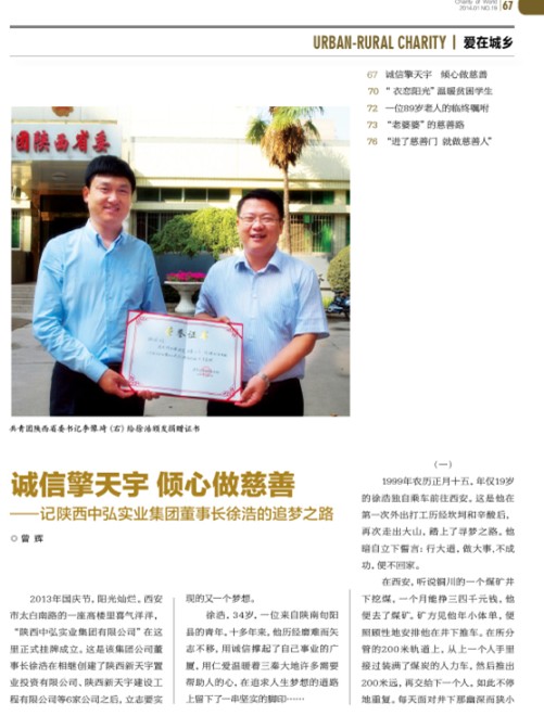 《善行天下》:诚信擎天宇 倾心做慈善——记陕西中弘实业集团董事长徐浩的追梦之路